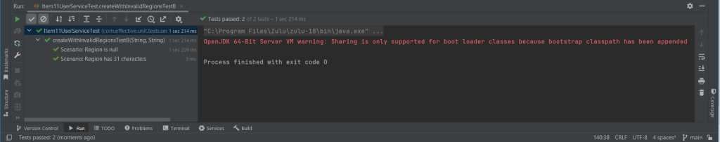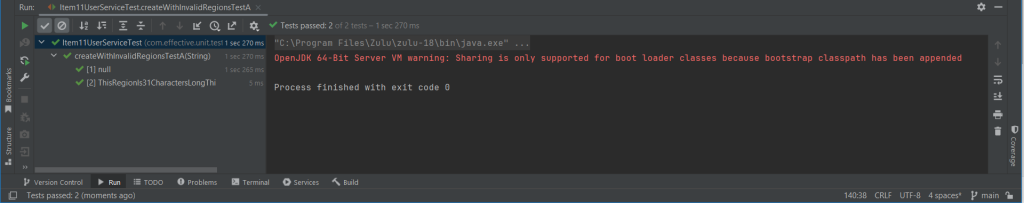 We have 2 tests which could be combined into a single test like this [Item11UserServiceTest.createWithInvalidRegionsTestA()]: