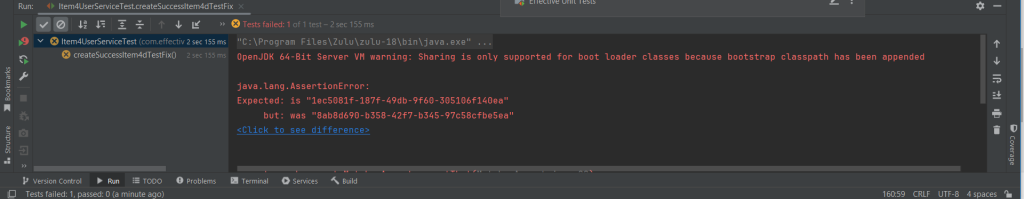 Let’s update the test to use constants as follows [Item4UserServiceTest.createSuccessItem4bTestFix()]: